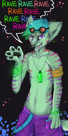 This is my character Toxic! He's a gay tiger with glowing stripes!RAVEING LIKE THERES NO END!!! AND SO SEXY WITH THAT GLOWING ARMPIT HAIR!