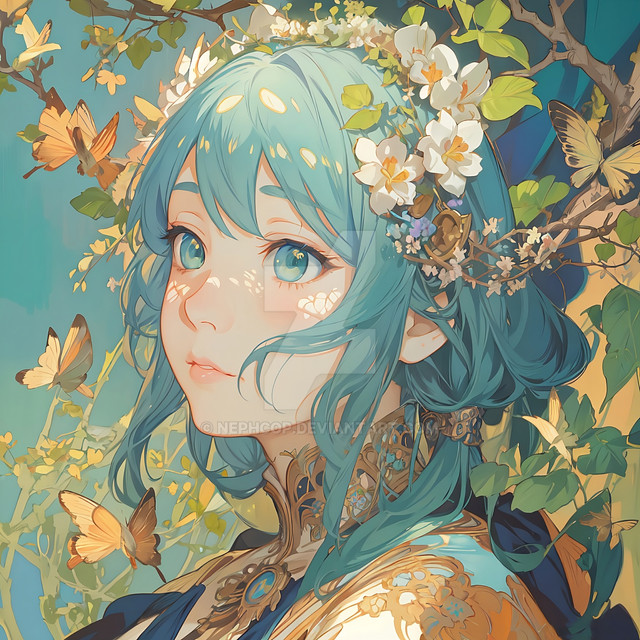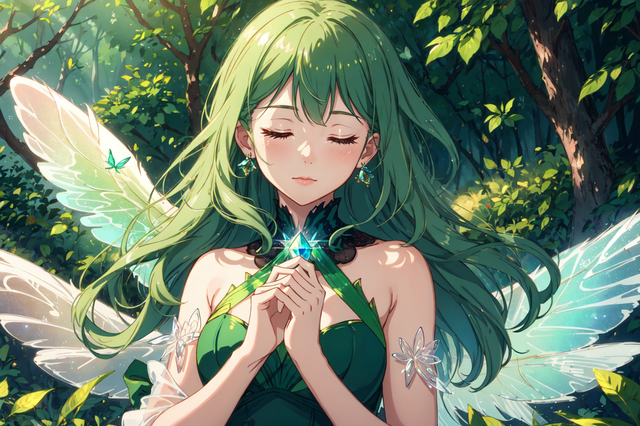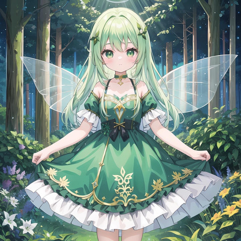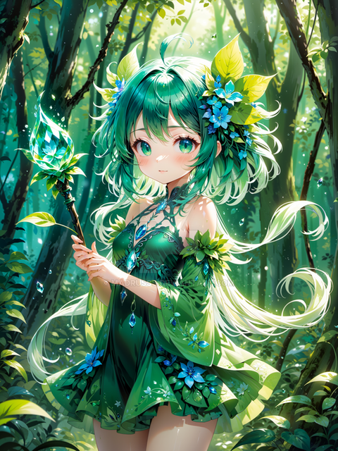 #ai #beautifulgirl #cuteadorable #cutekawaii #forestfairy #greeneyes #greenhair #original