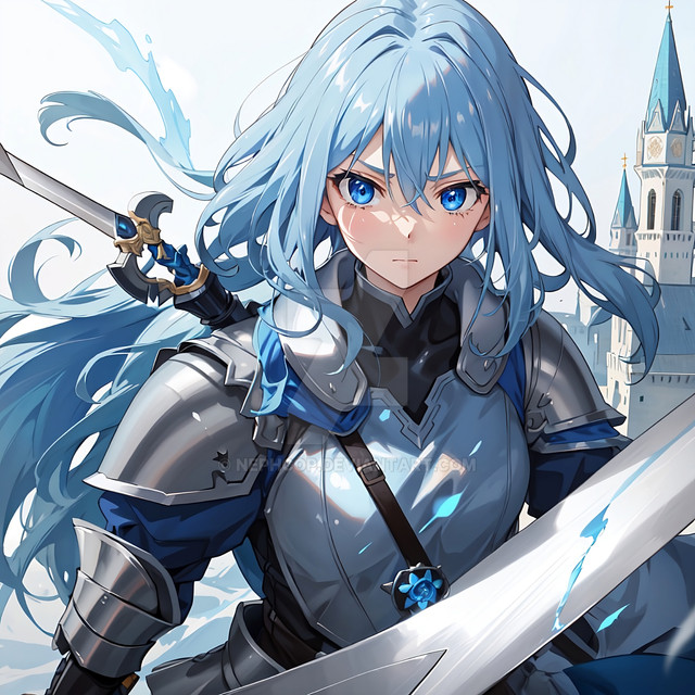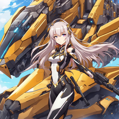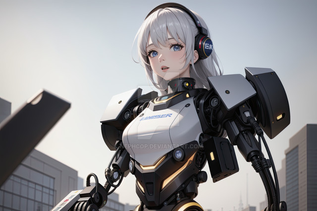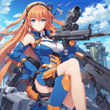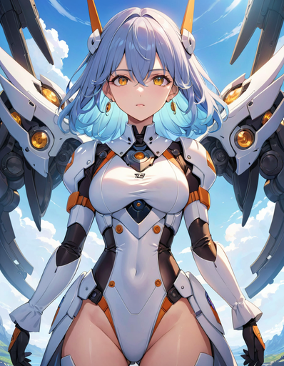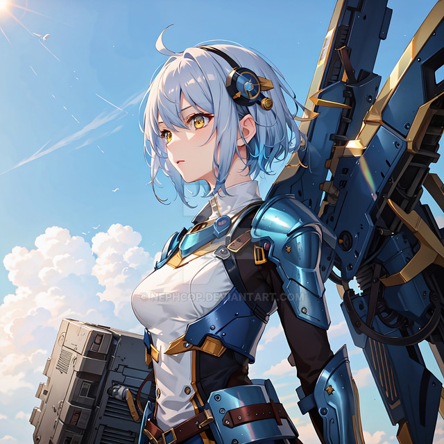 #ai #bluehair #bluesky #cuteadorable #cutekawaii #cyborggirl #goldeneyes #machine #machinery #original #weapons