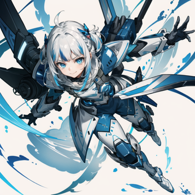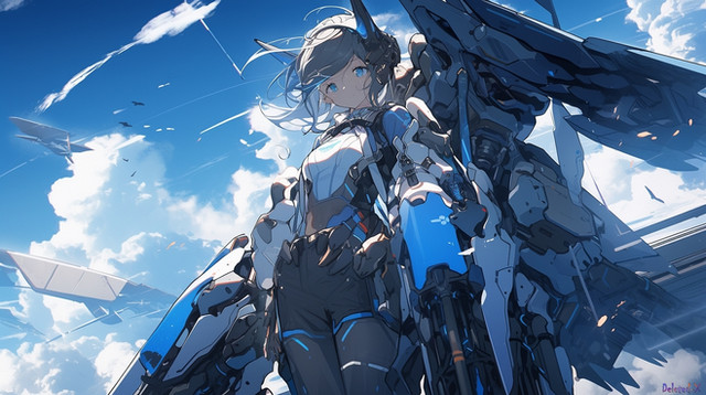 #ai #bluehair #bluesky #cuteadorable #cutekawaii #cyborggirl #goldeneyes #machine #machinery #original #weapons