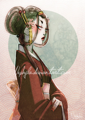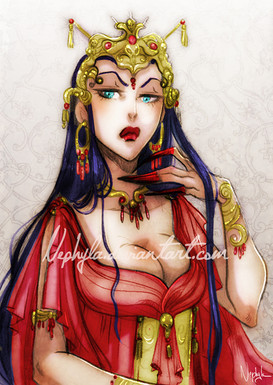 My tribute to 's contest about tea and the characters of her project called "Jade Eyes". This is Scarlet Lily, the famous widow of her story !I finish on the line, that's why I'm not totally happy with the details ! Nevermind, it's on time and ready for the show!^^
