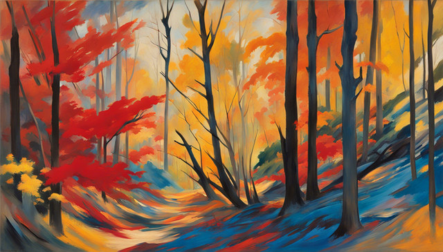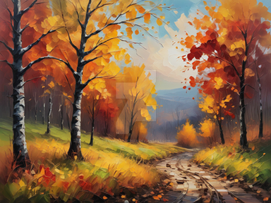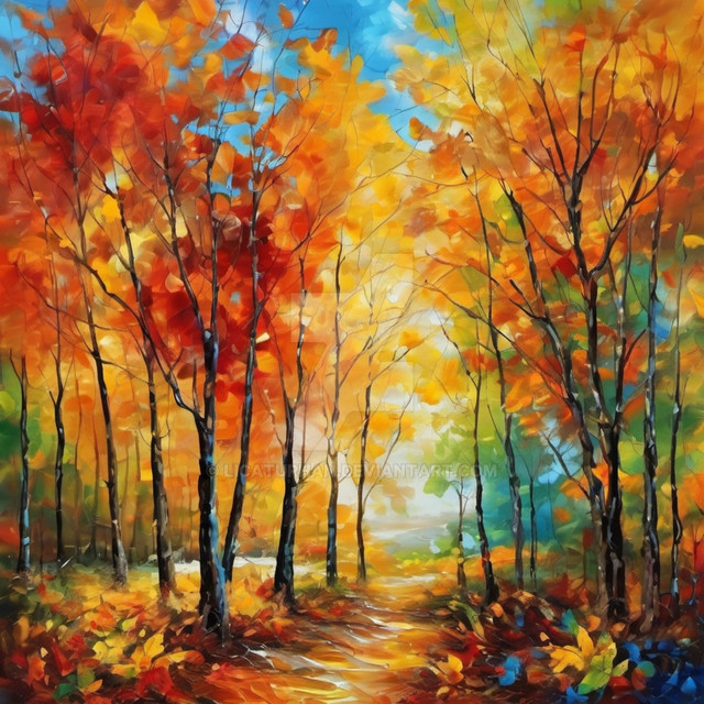 #ai #artwork #autumn #calm #colors #deviantart #landscape #leaves #nature #nerd #oilpainting #orange #peaceful #trees #vibrant #alexgabriel