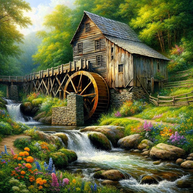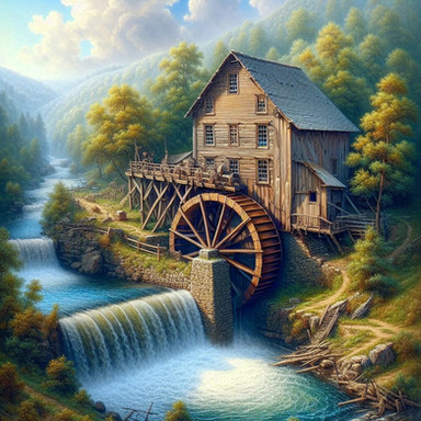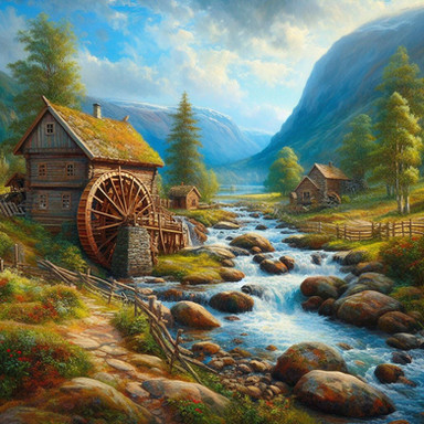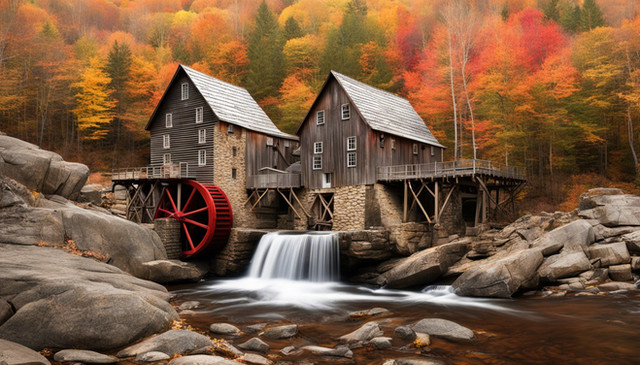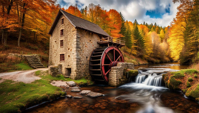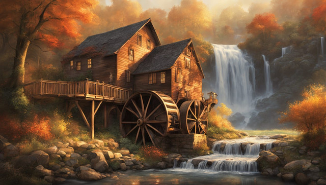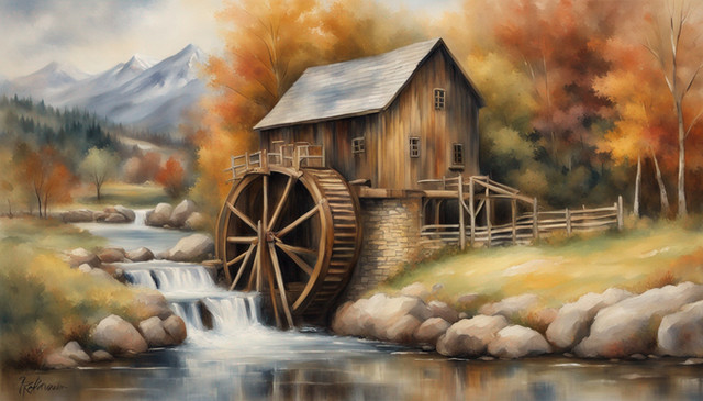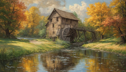 #ai #artificialintelligence #dalle3 #digitalart #fall #landscape #mountainscape #nature #oilpainting #trees #water #watermill #autumnscene #openai