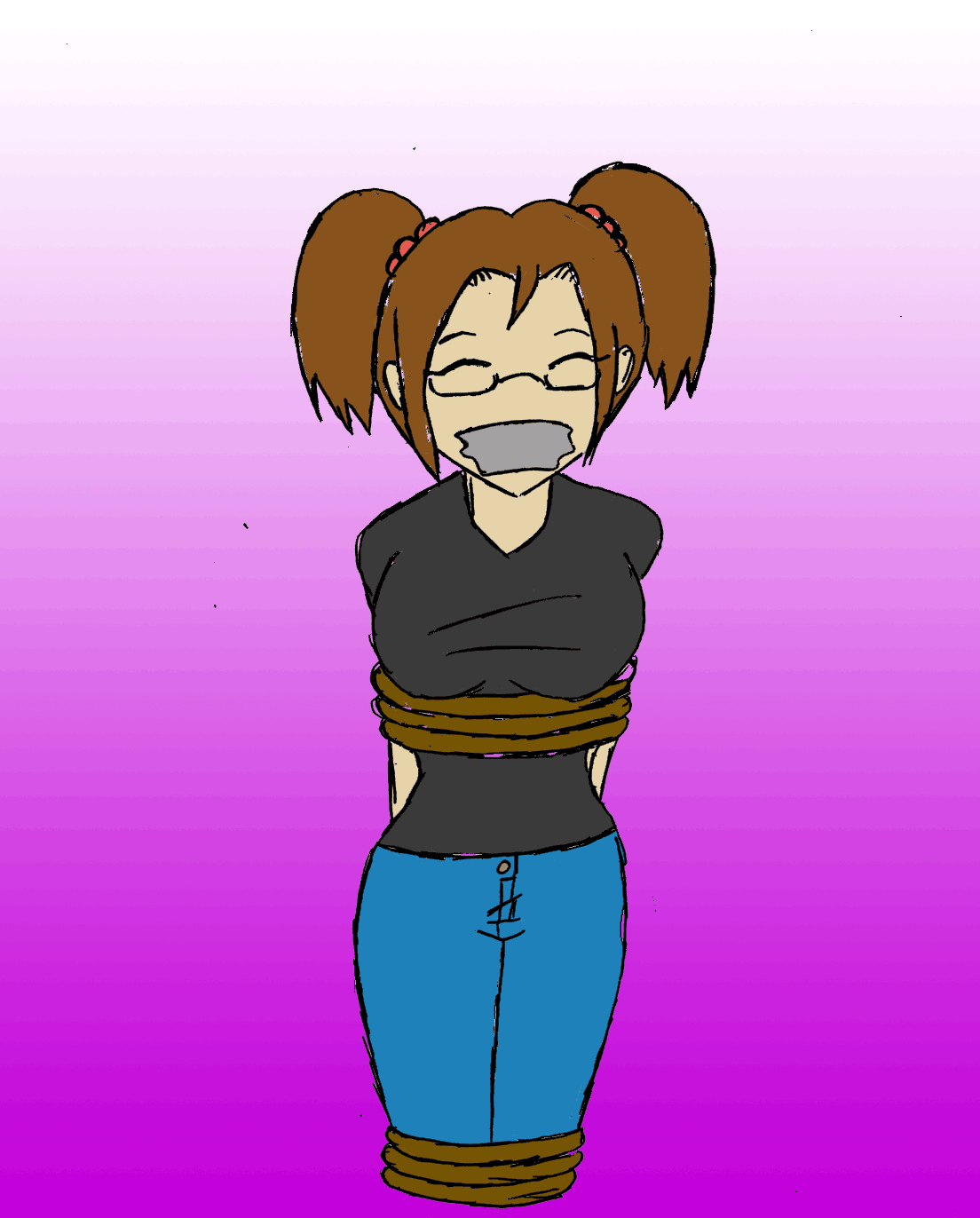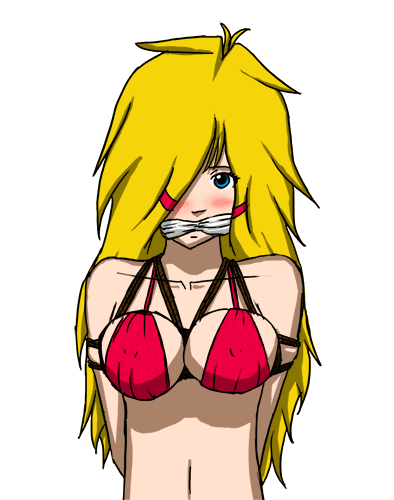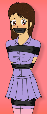 There are four varieties of tape: duct, red, black, and clear. Each can be applied to the eyes as a blindfold (except for clear tape), to the mouth as a gag, and to the damsel's body to bind her in three places (above the breasts, around the stomach, and around the thighs). While selected, click the mouse while the tape is over the desired target area to apply it.
