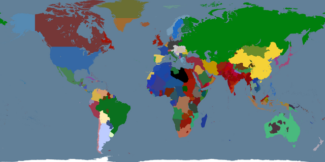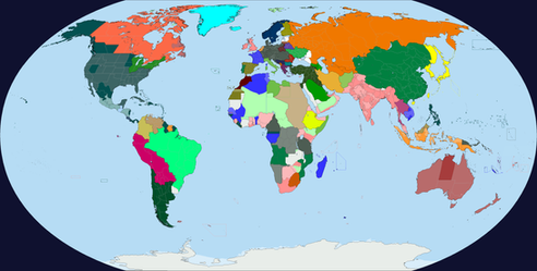 In my little sci-fi storyline, hundreds of years in the future, the Earth is drastically overpopulated and nations are frantically searching for resources and land for their people. Hence, the nations of the world revert to the imperialist practices of European nations of the 18th, 19th, and early- to mid-20th century.Unlike the old imperialistic era, the new era is not wholly dominated by Europe. Rather, I used a few qualifiers to determine which nations would gain empires or retain their land, including: