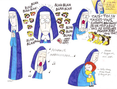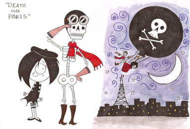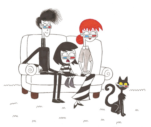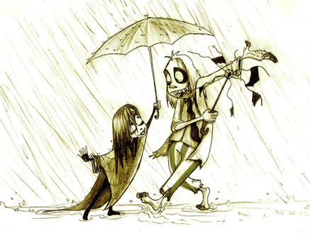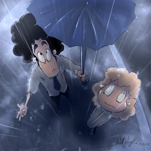 This is a sketch of Mary and Meek spending a day in the rain.The hat and raincoat Meek wears is also the disguise he wears when he goes with Marilyn into the real world so he can't be recognized. Mary's outfit is just for weather purposes (along with purple rain boots!