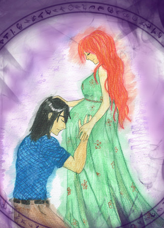 I really love Bella in this drawing (lol, never thought the words "Bella" and "love" would ever be in the same sentence) but yeah, you did a good job drawing a pregnant lady. Edward's cute too, his haircolor's how I imagine it.