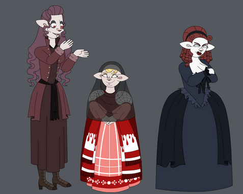 I don't think I'll ever get tired of drawing Ilona or drawing characters in clothes like this. Her last design was good, but I wanted to kick it up a notch with something vaguely more Victorian. I found this style of dress with what looks like a petticoat and I fell in love with it. So to match her count, here's something for Ilona, the countess. :3Ilona belongs toΒ