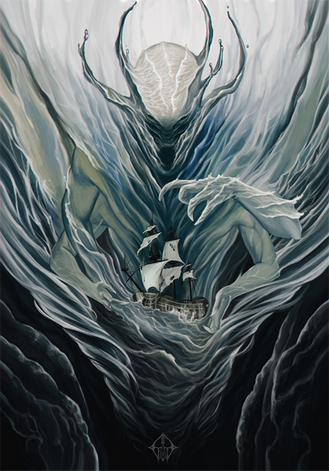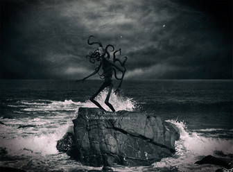 I'm on a roll with Lovecraft themed artwork lately"Then suddenly I saw it. With only a slight churning to mark its rise to the surface, the thing slid into view above the dark waters. Vast, Polyphemus-like, and loathsome, it darted like a stupendous monster of nightmares to the monolith, about which it flung its gigantic scaly arms, the while it bowed its hideous head and gave vent to certain measured sounds. I think I went mad then."