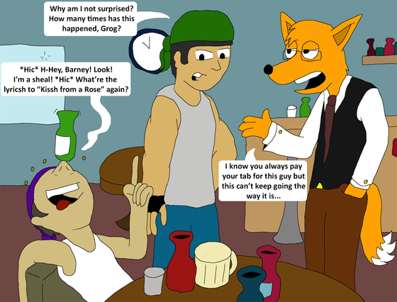 Blackie salutes a vanquished foe and buries that hatchet over a beer.For the whole story follow the link: neroursus.deviantart.com/galle…