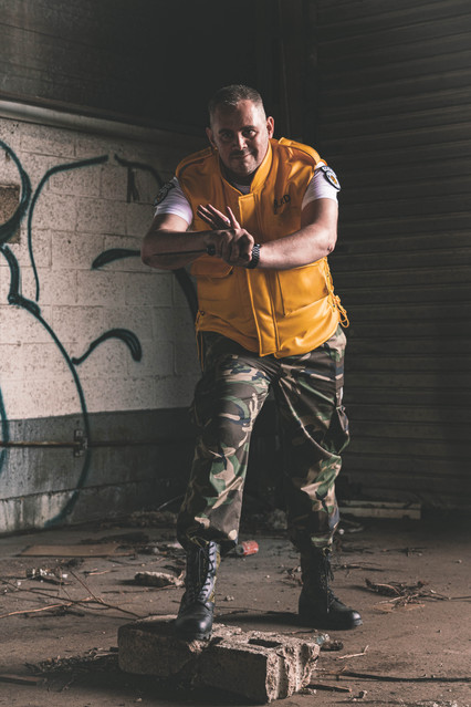 The pouches are my normal camera pouches, just rearranged to match his, and then my hugeass camera bag strapped on the back. not as uncomfortable as I thought but meant I kept forgetting it was there when sidestepping through gaps -_-