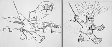 Drawn on 11X17 paper, with a fine, a flair marker for outline finish.