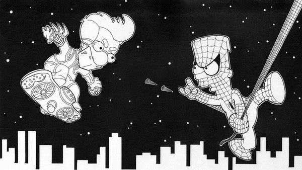 Bartman coming to the rescue for Milhouse, his underwear being put up his butt! Our favorite villians being caught off guard!