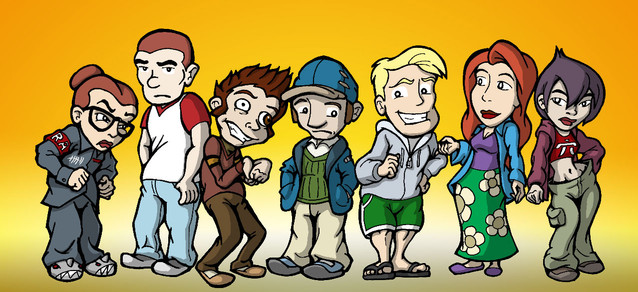 This was a drawing I had to really be reduced in size to scan & coloring it has made it lose alot of it's detail & reconizable characters. I aslo drew them as close to scale as possible, whos taller & smaller than who, etc;