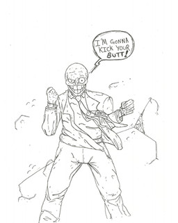 I did it on 11X17 drawing paper, with a No.#2 pencil & only used a red flair marker for the blood affect!