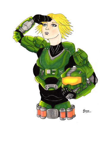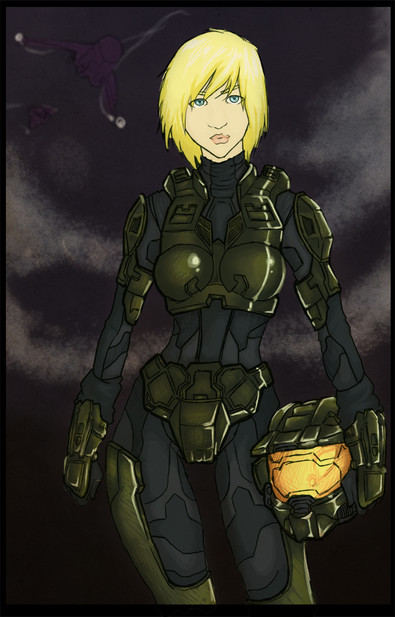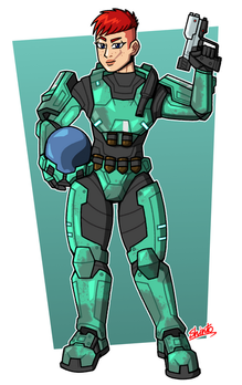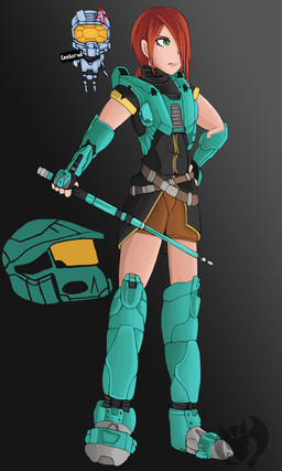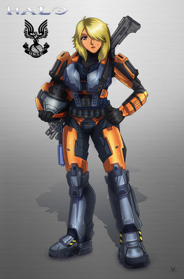 ~Master-MAG00 's Halo OC, Mebius. Hes got a lot of her without her Spartan Suit so i decided she needed to be in one. >_>After i finished i found out her suit was orange, and i did it in blue v__v; But i do like the orange/yellow a lot more than the blue actually |D