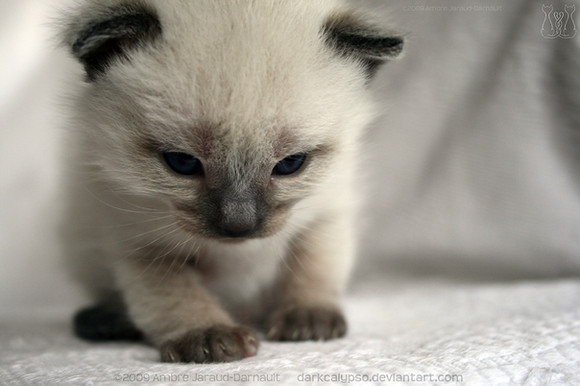 Although this little bundle of joy doesn't have a name,he is still just adorable. When I first saw this photo, I knew that I need to give him a hug. The photo captures his innocence and purity beautifully. His precious blue eyes really stand out against his seal point fur. How you managed to get his to hold still to capture this moment is beyond me. I love the use of furry fabric in the background. It seems to make him feel safer.The image is so clear and well presented and truly shows how cute this little one is. It almost feels like one could just reach out and pet him. Please continue taking such terrific photos. I can't wait to see them.
