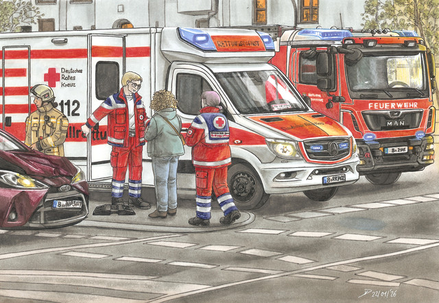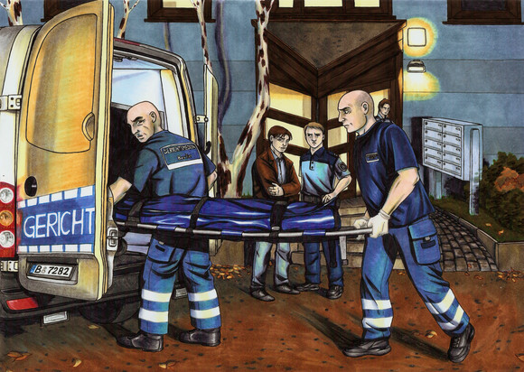 Dieses Bild hatte ich schon sehr lange (das Lied erschien 2010) beim Hören des Songs im Kopf, jetzt habe ich es endlich geschafft, es umzusetzen. Es hat tatsächlich noch mal gedauert, bis ich mit der Perspektive der Vorzeichnung zufrieden war. Ich habe auf hellblauem Papier nur mit N-Grautönen von Stylefile gearbeitet.