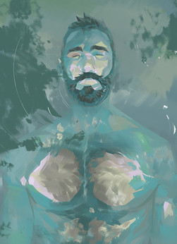 A bearded men mecha underwater.Related content