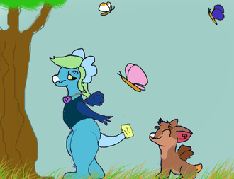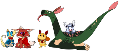 My two Wynglings seem to enjoy following Nymble around. He has no idea why, but he doesn't mind either.Probably because he likes to explore and has cool scars on his face, lol.