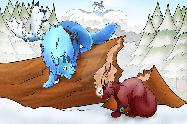 "Okay come on let's go! Let's go!" Nymble began rushing out the door to the cold outside, dragging his brother along with him once they had both been working out for several minutes.