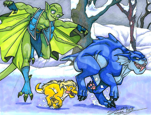 He looked over at Nymble several times in amusement, because the guy looked like he was going to pass out. He was over-exhausting himself jumping around like that too quickly, but he was so determined that he never stopped. Dryft wondered if he would do a face plant in the snow as soon as he stepped outside.