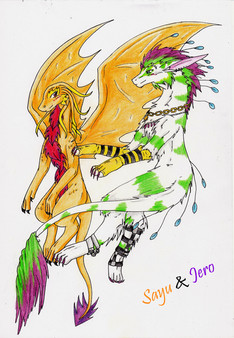 You mean are Nhimbus's claws like, retrackable like Ahrohra's? X3 Um... I dunno... I guess they could be.. since Ahrohra's are.. but since every picture I've drawn him in so far had his claws out, we'll just say that he can't retrack them like his mom. :3 He looks better with them anyhow. n.n;