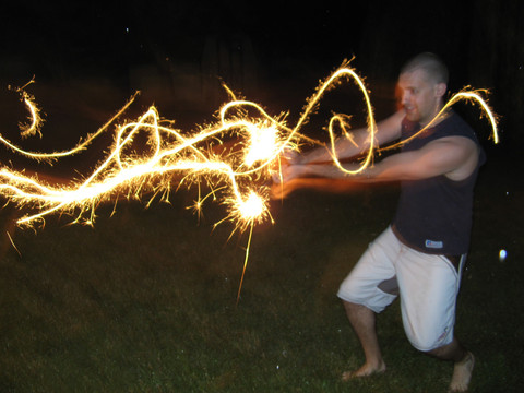 when i do things like this i like to do it in the pitch black and use a flash, on second curtain sync, to expose the picture once i've finished messing about