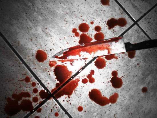 I love the splatters and the knife, but the blood looks incredibly fake :\