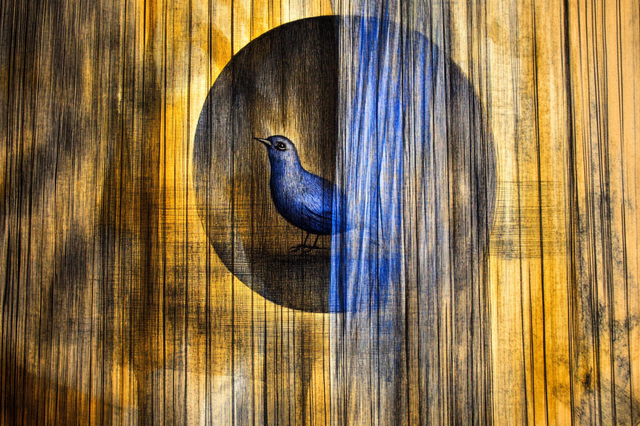 What would be great.. perhaps an extension of the style would be to rebuild parts of the drawing itself with line work.. say reconstruct the birds head using fine shapes for example.