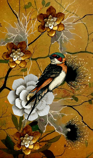 Wow, this is amazing. I love the background and the effects on it, plus that bird is just striking- the combination just has me captivated.