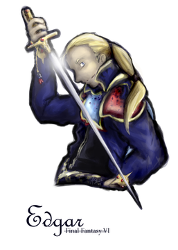It's Final Fantasy time once again. Next one of my FF6 fan-art characters is the dream bachelor of Figaro castle, Edgar. There's no other guy who can get it on with the ladies, with pick-up lines like: Hey baby! You wanna ride on my sand-diving castle?One of the more useful characters in the game. Not as tough as his brother but useful in other ways. He was surprisingly fun to draw. Took me about 7 hours(wow was it that long!?).