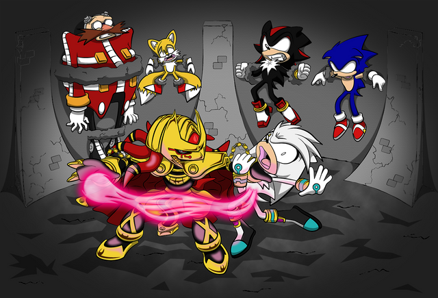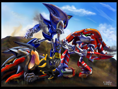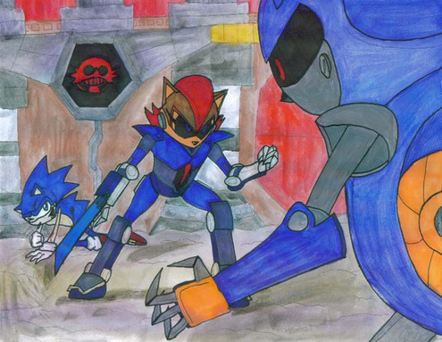 Get'em Metal Knuckles. You know, seeing Metal Knuckles in art has been a rare treat for me. And now I see him taking down one of the more infamous villains in Sonic history...most would have done Metal Sonic, but not you. I like that touch.