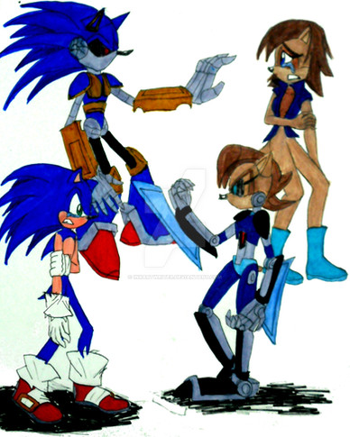 I haven't really seen you draw Elise so this a pretty good job on her, Sonic looks as dead as a wet napkin, and that stab pose in the front is excellent. Herrnff Herrnff...