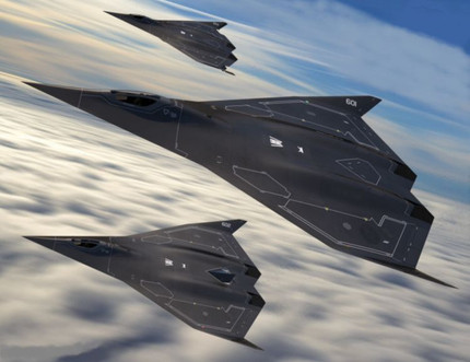 Lowpoly model of american concept supersonic 6th gen fighter + drone swarm