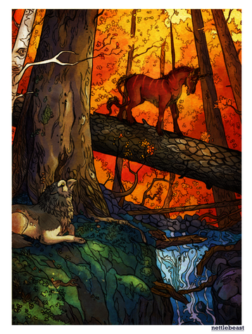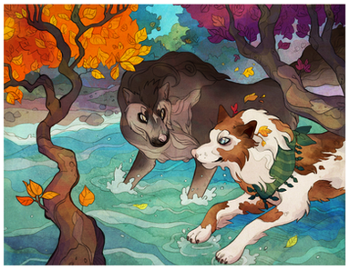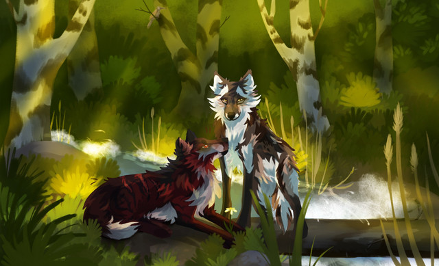 This is so beautiful! You have such a unique and awesome style, it's like none I've see. They look like they belong in a story book! and I just love the poses and background! You've drawn Sauru perfectly! Thank you so much!! <3