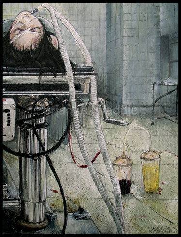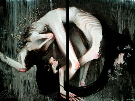 Before my winter break was over I wanted to get at least one big painting done. So I attached myself to my desk chair and stabbed a paintbrush through my hand, not moving my legs until I had made a presentable mess of painty smearings.Sadly my atrophied legs were a loss after 3 days of furious painting bit I guess it was worth it.