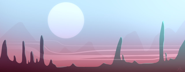 Based on a background in the MS-DOS version of Turrican II. A number of YouTubers have started compiling their episodic content into singular videos (even calling them seasons, which feels rather quaint, in a good way) and I just watched one from Scarfulhu. He normally reviews point-and-click adventure games, but he also reviews the odd shooter or platformer. Turrican II was also released on the Amiga and those games always tended to have a distinct look, including some very beautiful backdrops that almost always have gradients. As some of you may know, I love a good gradient and wanted to try something in Picsart's Color app using their pre-made gradient backgrounds. Unfortunately, for as pretty as they are, they don't scale very well and their compression artifacts reveal this lack of optimization for any screen bigger than an iPhone SE.Maybe I'll remake it in MSPaint and do a side-by-side.