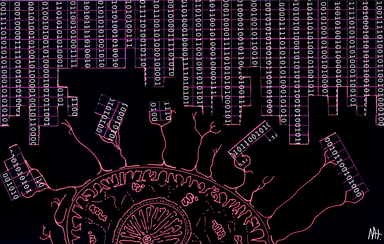 Looks like a maze with a little "foly f***" in the middle. But good, nonetheless. I like how you don't draw people and stuff like most of us here and instead opt for more computer and inner-mind-working type art.