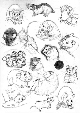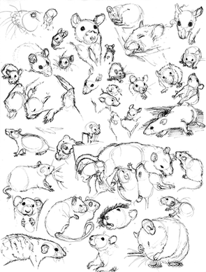 i feel like when ever i try to draw them from life my sketches end up more like impressions of movement rather then a rat drawing XD but from that i can build what i have learned from photos of rats to make a more complete drawing!