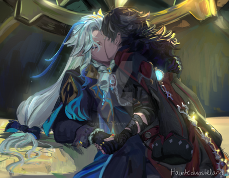 I struggled a LOT with this one. I actually wound up redrawing byleth's face about three times. Dimitri was less of a pain, but I still had to make a lot of minor adjustments (mostly because his head was wayy too big). I really want to draw actually cute dimileth one day, but today was not that day.twitter.com/neverinstone