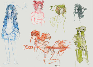 Here are some little scribbles that I decided to finish. It was the modeling of a couple of characters for some Academic Universe after we learned that it is no longer required for children to learn cursive--and I admitted that I have difficulty comprehending it. Thus was born a faun who could speak in cursive and no one could understand him.Characters belong to me