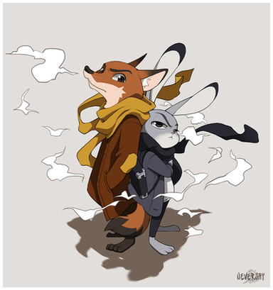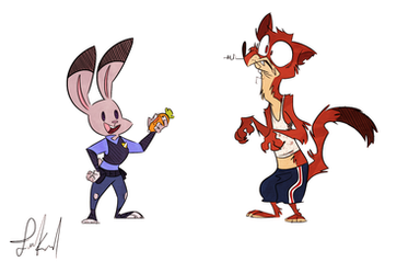 Hah, I sketched this when the first trailer appeared (and Judy shot him with the tranq) and after...later trailers, I realized their actual relationship is much more friendly haha.Β