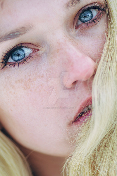 Her freckled, eyes, lips and skin are all so beautiful, and I love the simplicity of this shot. The softness of her hair contrasts so well with the background.