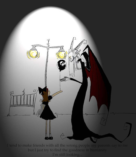 Based on a chat I had with about monsters and their only true weakness: blue smarties. They're like Kryptonite to monsters, and turns out even the great Boogeyman himself can be destroyed by the power of blue smarties.Couldn't help but doodle this.