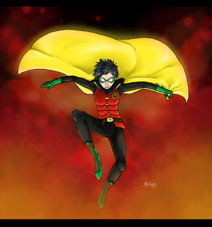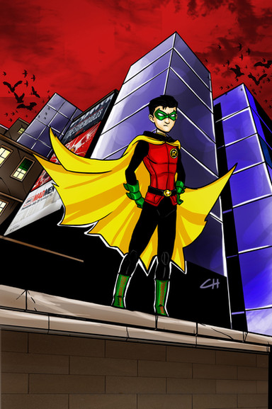 #batman #brucewayne #cape #damian #dccomics #dcuniverse #dick #edificio #fanart #hero #red #robin #superhero #superheroe #yellow