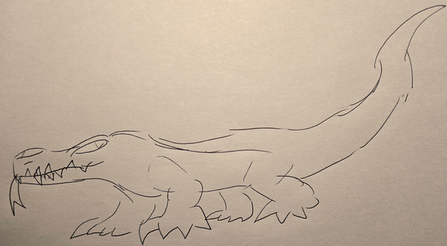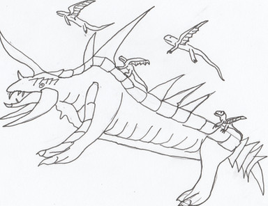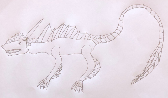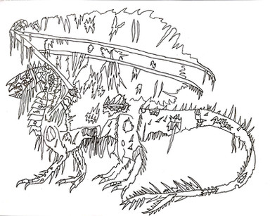 Description: One of the stranger animals to live on the "Misfit Continent", this large reptile is sometimes called the "gorilla drake". It does show some properties that show that it is related to the common drake, but there are no fossils of drakes on Ozeedus. This is an extremely enigmatic animal and only seen a handful of times. From what we have observed, they hunt alone by sneaking close to prey, which can be ground dragons, ground birds, dinosaurs, and mammals, and then attacking them with their huge clawed hands. In the dry seasons, adults hunt juveniles and even vice versa depending on the situation. They have a large skin made frill around the neck to ward off rivals and potentially larger predators. The sail on its back to both regulate its body temperature and help attract a mate. The female will lay a clutch of 2-5 eggs and in a matter of a few months the young will hatch and leave to live solo lives in which they are completely independent. The young will live in the trees where they hunt small bugs, reptiles, and birds. The average life expectancy for these creatures are about 50 years but recently a 65 year old specimen was found dead and helped boost our understanding of this mysterious creature.