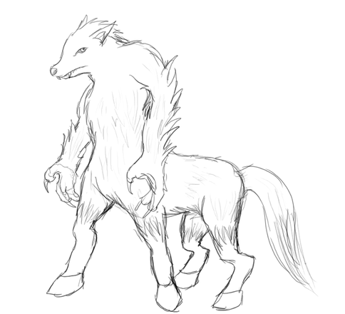 ok. its suposed to be jumping over somthing and morphing from wolf to horse in mid air. personally i think that from a certain veiw it could just be half wolf half horse creature lying down but that might just be because i didnt draw what its jumping over. and yes i am aware that the horse part looks more pony than horse but by the time i realized that i couldnt change it. anyways, im shut up now cuz i feel like im babbling.please comment. ^^