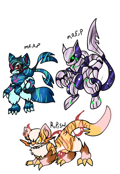 I wanted to make some crybeasts. i'd make some for adopts but idk if anyone is interested in them besides me lol.at the top is a Chrymbeast, which is the last variant (i think lol) but of course, we had common crybeasts that are black with the vvivvidum on their insides, and white inverted titans have black innards with condensed vvivvidium crystals, WELL i had the final version of course.