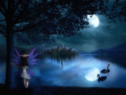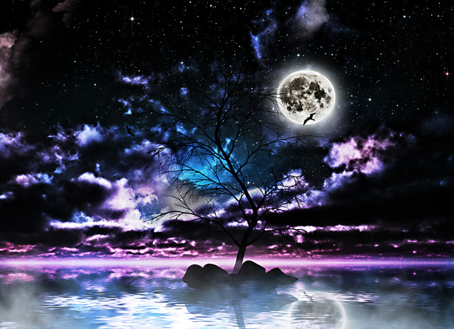 Critique-wise, there's not much I can say here! The only thing that really strikes me as odd is the glow around those flowers in the foreground. I assume you wanted them to look magical, which is why they're glowing, but it seems like the glow should be tinged with color, just to make it work with the cool colors in the rest of the pieces. That spot of yellow, pale though it is, is the only non-cool color you have--maybe use Ctrl-u to poke it over towards blue?
